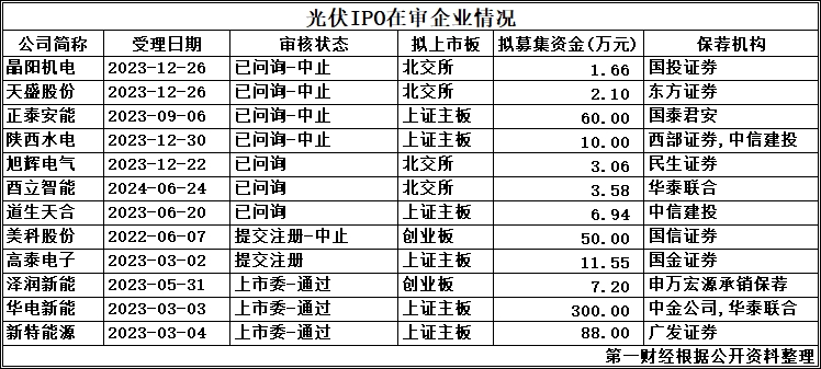 另外,华电新能于2023年6月过会、新特能源于2023年9月过会,但两家企业到目前为止依旧未提交注册。