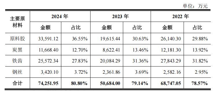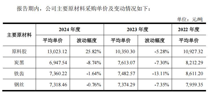 2024年,原料胶涨价10.62%,公司为维持客户关系适当调整产品价格,结果毛利率从28.28%调整至22.75%,净利润有所下降。原材料价格若持续上涨,将对公司盈利能力带来一定压力。