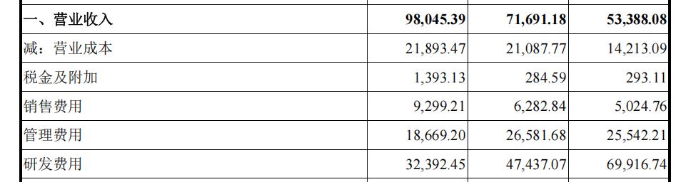 近三期完整会计年度内,公司研发费用分别为7亿元、4.7亿元、3.2亿元,研发费用占营业收入的比例分别为130.96%、66.17%、33.04%。