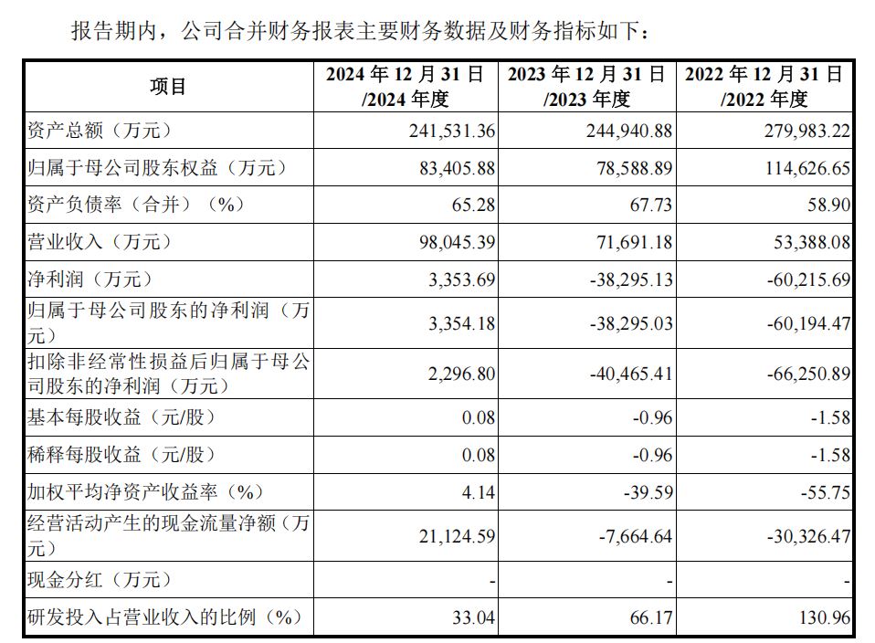 百奥赛图在报告期内刚刚实现扭亏为盈,但存在大额累计未弥补亏损。截至2024年12月31日,公司未分配利润为-17.5亿元。