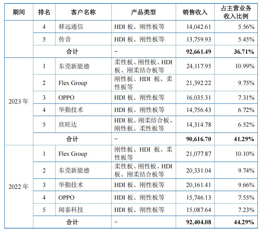 红板科技客户集中度较高的问题同样引人关注。报告期各期,公司向前五大客户的销售收入占主营业务收入的比例分别为44.29%、41.29%、36.71%和31.63%。尽管占比呈下降趋势,但仍超过三成。公司主要客户包括东莞新能德、OPPO、伟创力等知名企业,若未来主要客户生产经营状况发生波动或合作关系生变,将直接冲击公司业绩。