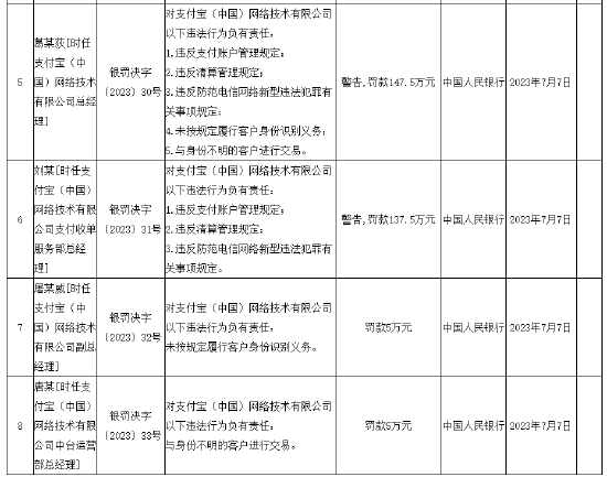- 央行开出大罚单!支付宝被罚22.31亿元 蚂蚁科技集团被罚1.75亿元2023-07-10
