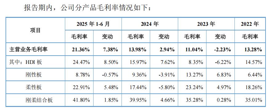 更为值得关注的是,公司主营业务毛利率如同过山车,报告期内分别为13.28%、11.04%、13.98%和21.36%。2023年毛利率下滑主要受HDI板销售价格下降及新投产载板工厂拖累,而2024年及2025年上半年毛利率快速回升则依赖客户结构优化和产品提价。这种依赖外部因素的毛利率改善能否持续,仍需市场检验。