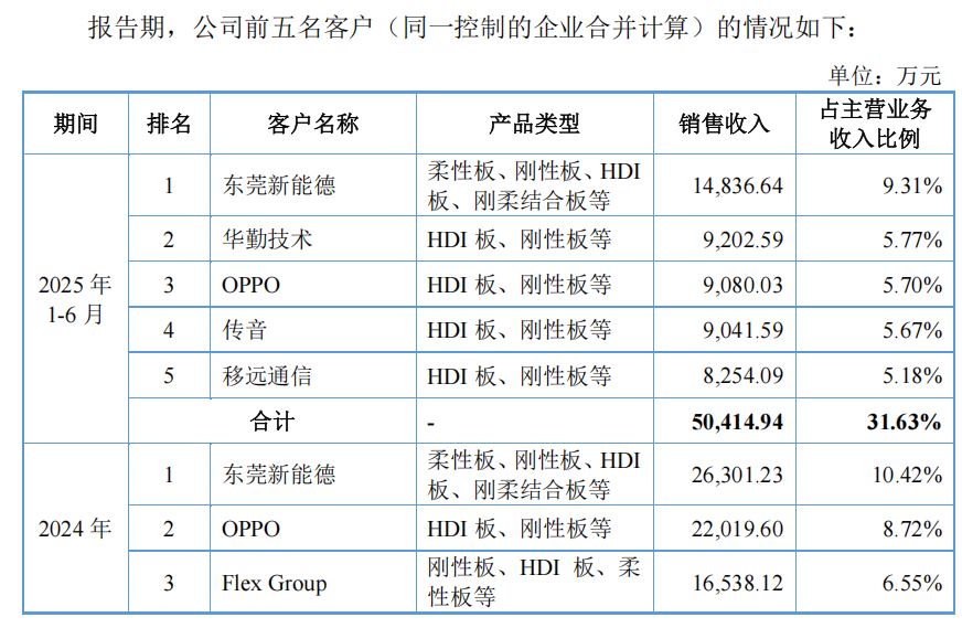 红板科技客户集中度较高的问题同样引人关注。报告期各期,公司向前五大客户的销售收入占主营业务收入的比例分别为44.29%、41.29%、36.71%和31.63%。尽管占比呈下降趋势,但仍超过三成。公司主要客户包括东莞新能德、OPPO、伟创力等知名企业,若未来主要客户生产经营状况发生波动或合作关系生变,将直接冲击公司业绩。