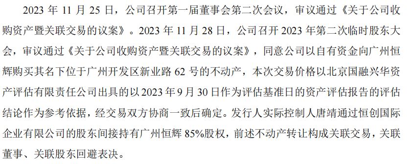 2023年底,慧谷新材董事会通过议案,决定以6500万元自有资金向广州恒辉购买其名下位于广州开发区新业路62号的不动产。