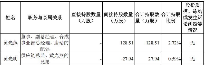 慧谷新材呈现典型的家族化治理结构。实际控制人唐靖合计控制公司59.02%的表决权。多名家族成员在公司担任要职。妻子黄光燕担任董事、副总经理,持股2.72%;侄女婿杨海朋担任董事会秘书,持股0.17%;妻兄黄光明担任供应链总监,间接持股0.59%。