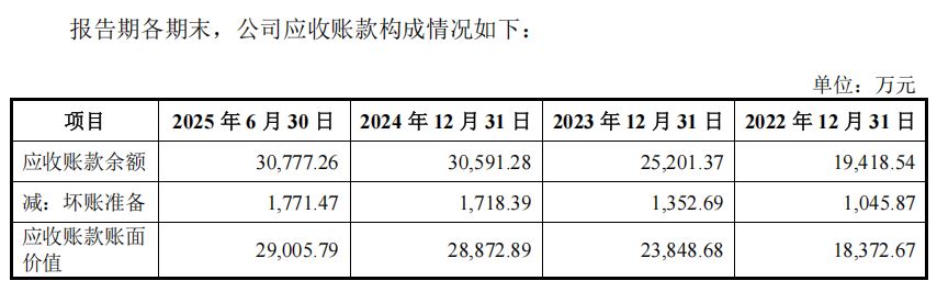 在产品单价不断下滑的同时,公司应收账款账面价值从2022年的1.84亿元增长到2024年的2.89亿元,占资产总额比重超过22%。