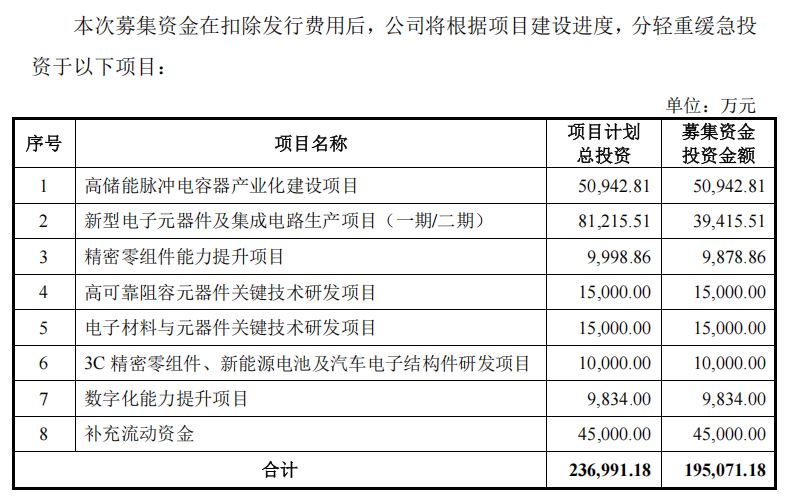 招股书显示,宏明电子计划募集资金19.51亿元,其中高达4.5亿元计划用于补充流动资金,占募资总额的比例超过23%。