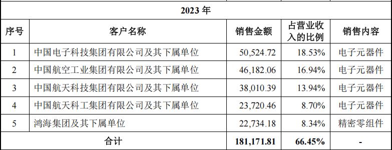 公司前五大客户销售收入占营业收入比重较高,2023年达到66.45%。客户集中度风险可能引发监管对其业务稳定性的担忧。