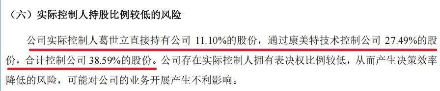 内部控制层面,康美特的实际控制人葛世立合计控制公司仅38.59%的股份,持股比例相对较低。这一股权结构可能导致决策效率降低,甚至引发控制权稳定性风险。对于一家正处于扩张期的科技企业而言,实际控制人表决权不足,或对公司战略执行的连贯性构成潜在威胁。