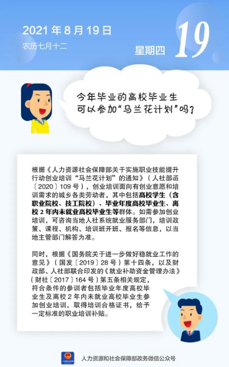 - 【人社日课·8月19日】今年毕业的高校毕业生可以参加“马兰花计划”吗?2021-08-19
