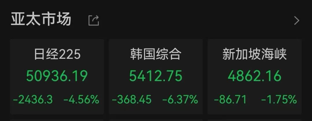 Wind数据显示,截至北京时间3月23日9:20,日经225指数大跌超2400点,跌幅为4.56%,盘中创今年以来新低。韩国综合指数大跌逾6%,3月以来累计跌幅已超13%。